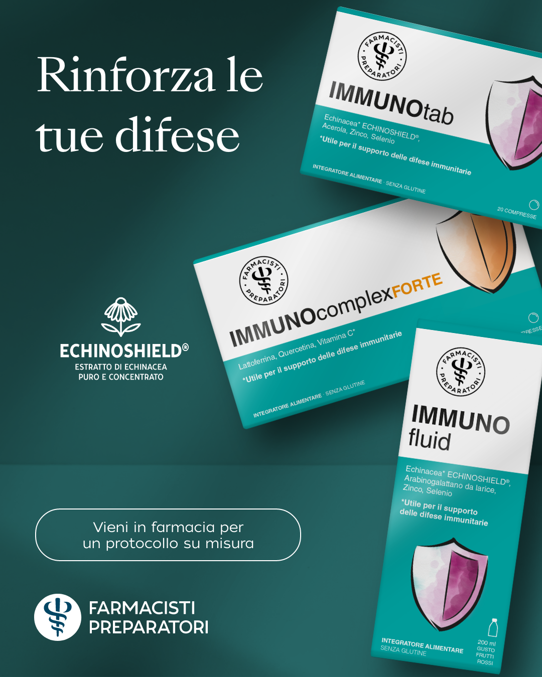 💊 IMMUNOtab: Compresse con Echinoshield®, Acerola (Vitamina C), Zinco e Selenio per un’azione sinergica a protezione dell’organismo.
